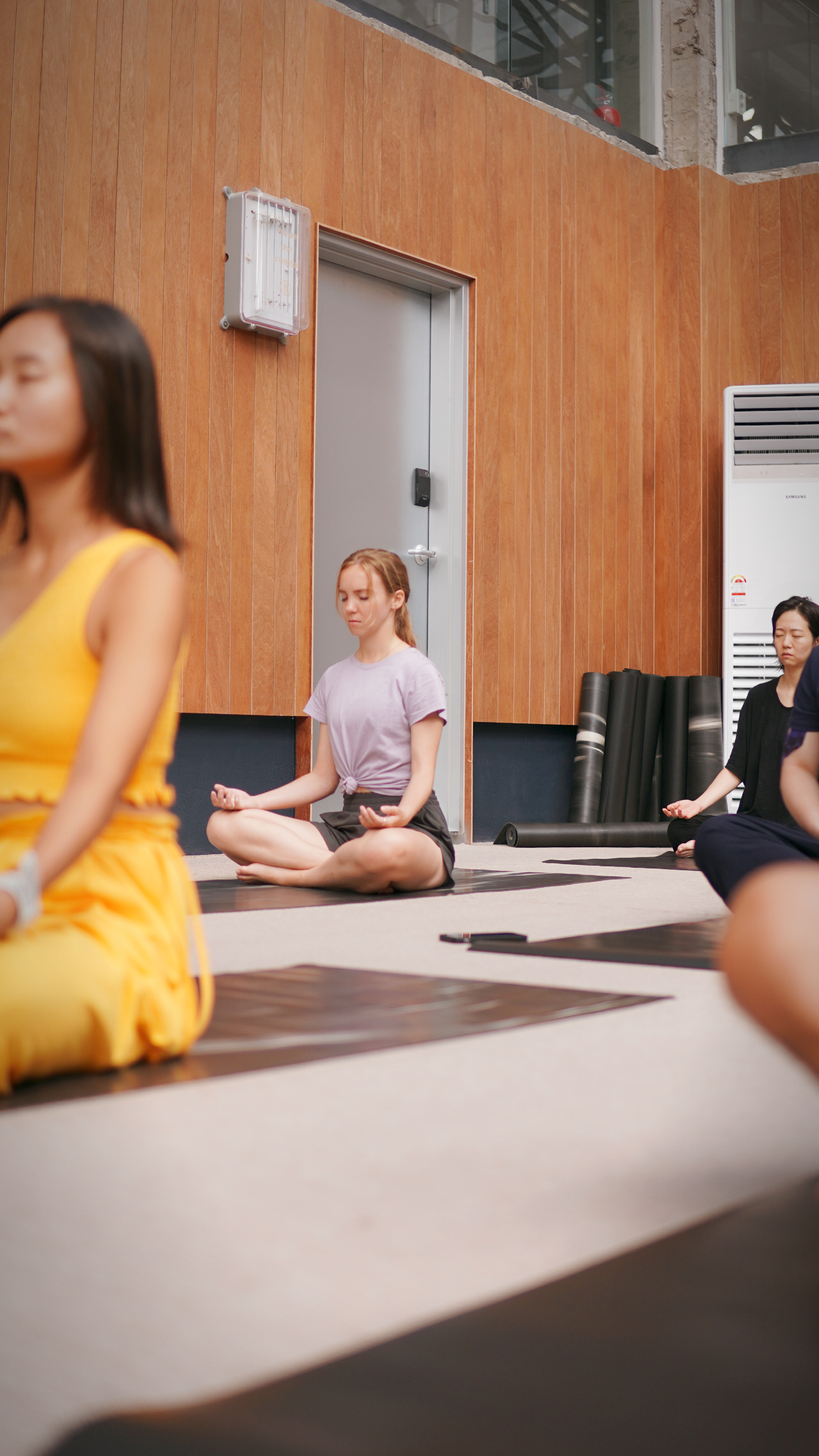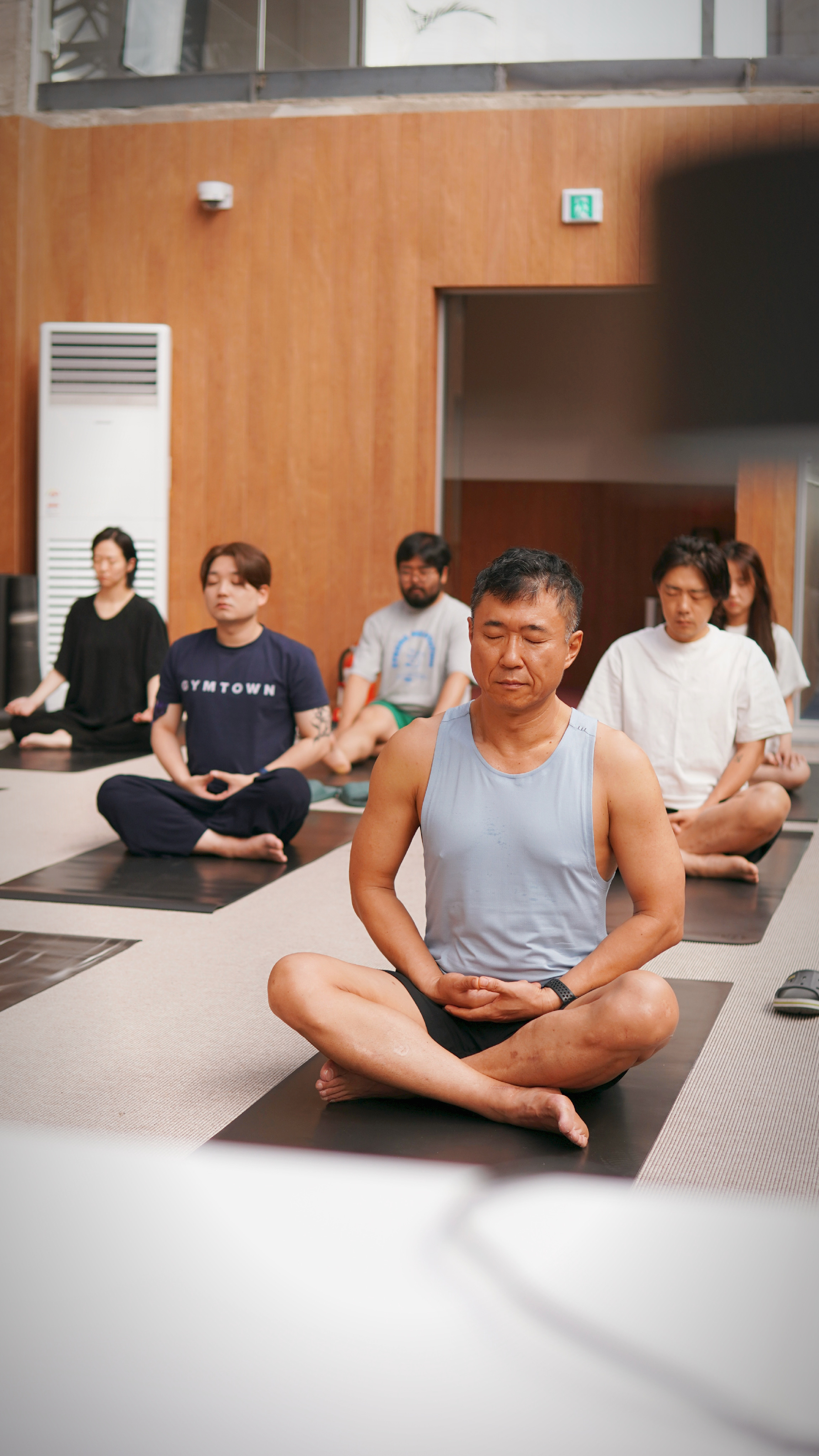 달리기를 하며 잔뜩 긴장되어 있던 몸을 이완해주는 아로마를 활용한 요가와 명상을 합니다.